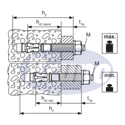 o FAZ II, FAZ II HBS (con rondella conforme alla norma per le costruzioni in legno DIN 1052) e FAZ II H (con dado cieco) possiedono due profondità di ancoraggio (standard e ridotta).
