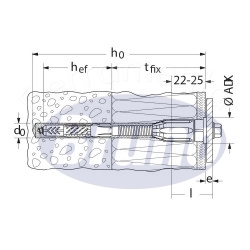 In caso di utilizzo su legno senza fissaggio UX, il legno così come l'intonaco, deve essere pre-forato: Thermax 8: d0 = 14 mm, h0 = 50 mm; Thermax 10: d0 = 18 mm, h0 = 50 mm (vedere nota a piè pagina nella tabella dei carichi)