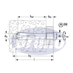 Quando si applica la coppia di serraggio, il cono è richiamato nel corpo dell'ancorante, che si espande contro la parete del foro.