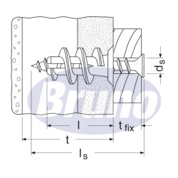 Il tassello per cartongesso GK è adatto per installazioni non passanti.