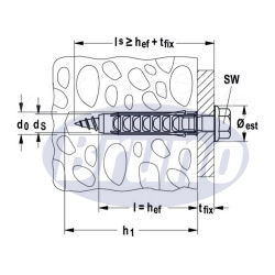 Con le profondità di ancoraggio maggiorate di SX 6x50, 8x65 e 10x80 il fissaggio è particolarmente adatto per fissare in materiali cavi, calcestruzzo cellulare e per attraversare l'intonaco.