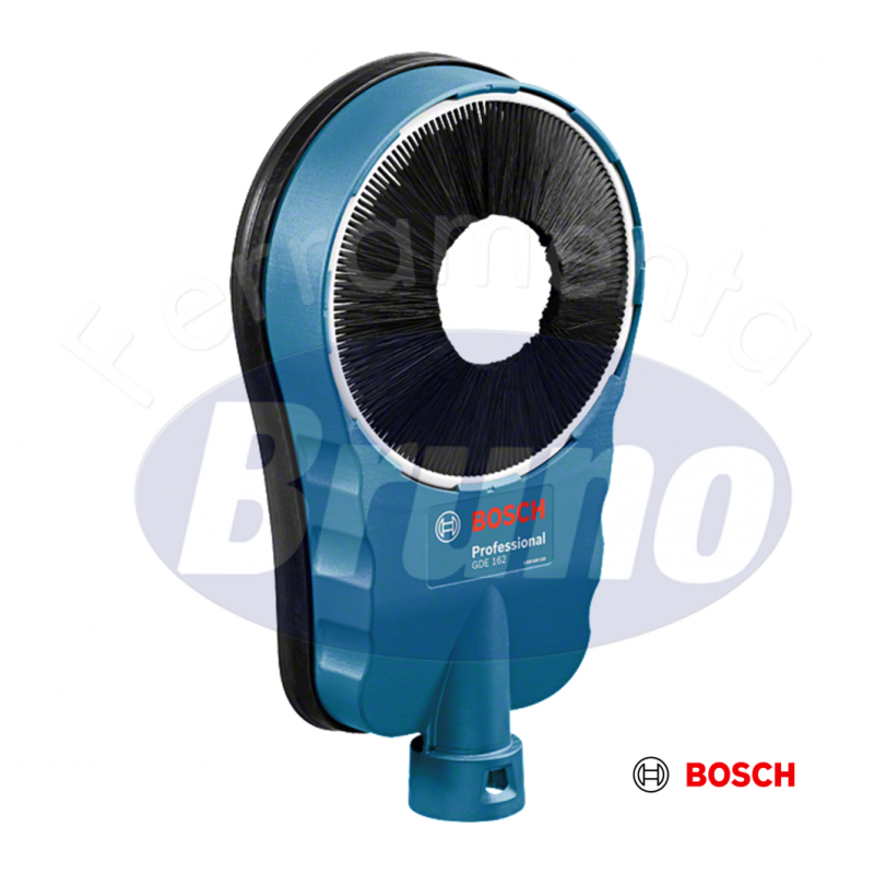 La cuffia di aspirazione polvere GDE 162 Professional è la pratica ed universale soluzione Bosch per grandi diametri di foratura al diamante, fino a 162 mm. Quest’accessorio consente un lavoro pulito, riduce i tempi di pulizia e migliora la protezione dell’utilizzatore. Per un impiego pratico e versatile, si può fissare in modo semplice e veloce direttamente sulle pareti, si può adattare a diverse posizioni di lavoro ed è indicata anche per impieghi ad umido. L’accessorio è concepito per impiego con il sistema Click & Clean Bosch.