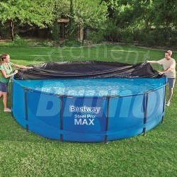 La copertura piscina Bestway® è il telo copripiscina in materiale resistente per impedire ai detriti di finire nell'acqua in cui ti immergi. Include corde di fissaggio e fori di scarico per evitare qualsiasi accumulo d'acqua. Per piscine e piscine Hydrium Splasher da 4,60 m x 90 cm.