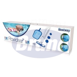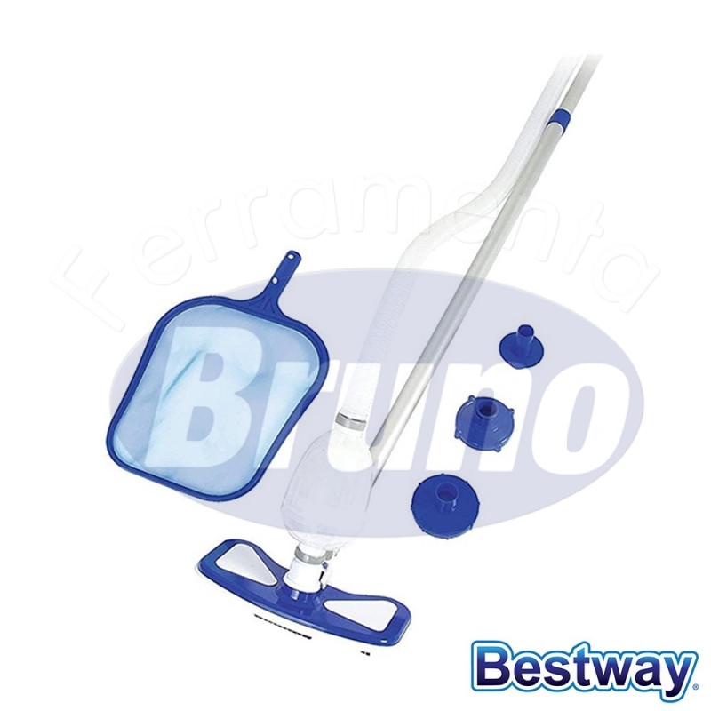 l kit offre una soluzione semplice ed economica per la cura dalla propria piscina senza dover necessariamente ricorrere ai robot pulitori. In un’unica confezione si dispone di tutto il necessario per una manutenzione efficace e precisa della vostra piscina all'aperto: un’asta telescopica da 2,79 metri, un retino per la pulizia della superficie dell’acqua e un sistema di aspirazione da collegare alla pompa di filtraggio della piscina stessa.