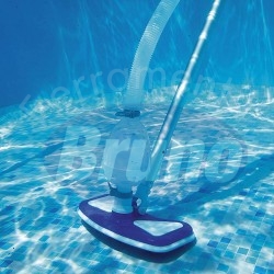 La spazzola va collegata all'estremità del manico telescopico che con la sua portata vi consente di raggiungere anche i punti più difficili della vasca. Alla spazzola va poi inserito il tubo di aspirazione lungo 7,5 metri. Una volta assemblati entrambi e collegato il tubo alla pompa filtro, l’aspiratore rimuoverà lo sporco dal pavimento e dalle pareti della vasca, proprio come fosse un’aspirapolvere subacqueo.