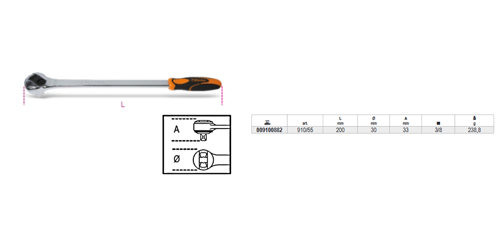 BETA CRICCHETTO REVERSIBILE CON ATTACCO QUADRO 3/8"