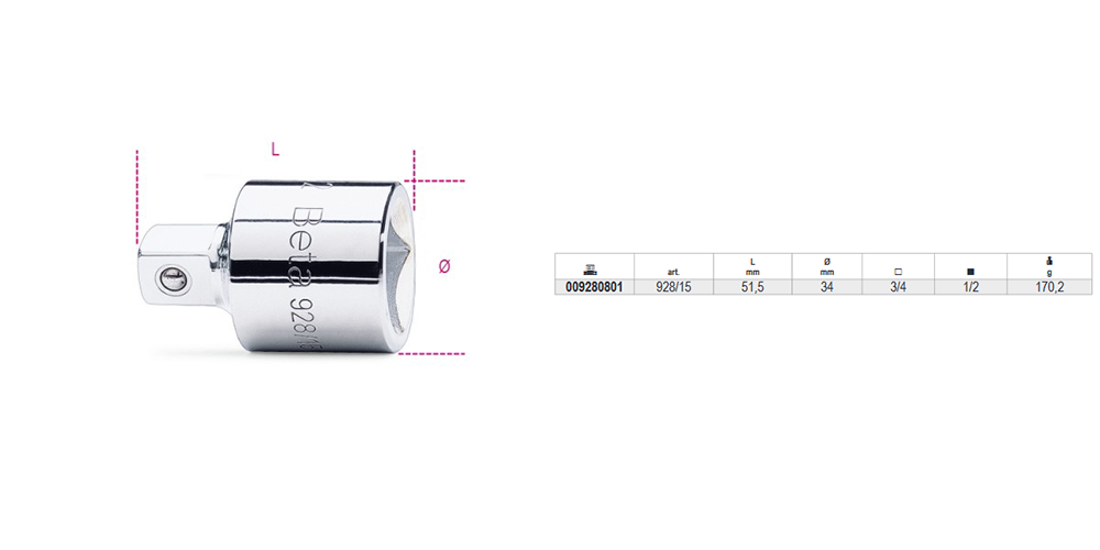 BETA RACCORDO CON ATTACCO QUADRO FEMMINA 3/4" E MASCHIO 1/2"