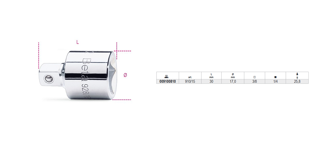 BETA RACCORDO CON ATTACCO QUADRO FEMMINA 3/8" E MASCHIO 1/4"