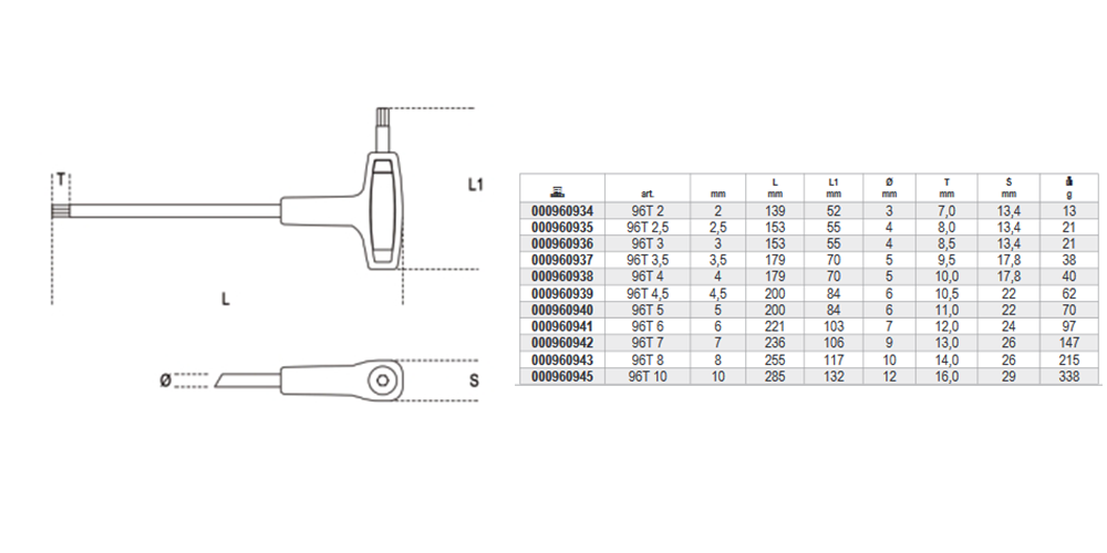 o L'accurato proporzionamento dell'impugnatura ergonomica, in funzione della dimensione della chiave, garantisce serraggi elevati anche in spazi ristretti.