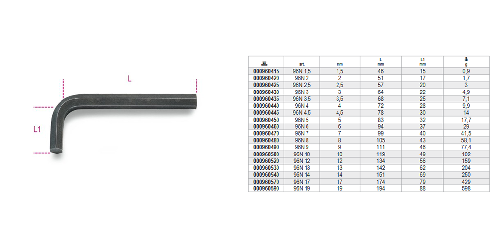 BETA CHIAVE MASCHIO ESAGONALE PIEGATA