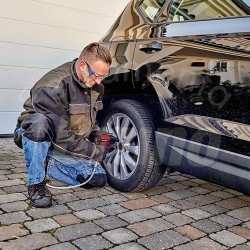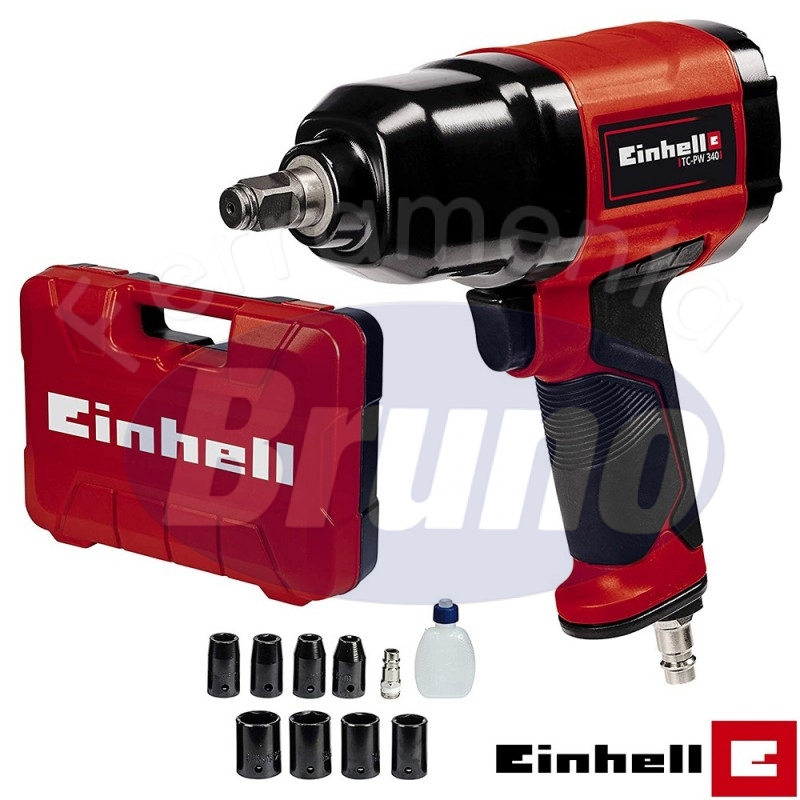 L'avvitatore a percussione pneumatico TC-PW 340 di Einhell risponde perfettamente alle esigenze di chi deve eseguire lavori in casa, in officina e in garage. L'avvitatore a percussione raggiunge una coppia massima di 340 Nm. L'impugnatura antiscivolo gommata garantisce sicurezza e comodità in qualsiasi condizione di lavoro. Essendo dotato di rotazione a sinistra (un livello) e a destra (tre livelli), l'avvitatore a percussione pneumatico è in grado di svolgere numerose operazioni. L'avvitatore a percussione raggiunge le migliori prestazione a partire da un diametro interno del tubo flessibile di 9 millimetri. Pressione di lavoro massima di 6,3 bar, filettatura massima di 14 millimetri. Nella dotazione di consegna sono comprese 8 inserti a bussola nelle dimensioni più comuni di 8/10/11/13/17/19/21/22 mm, 1 boccetta d'olio e 1 raccordo rapido. In questo modo l'avvitatore a percussione pneumatico TC-PW 340 di Einhell è immediatamente pronto per l'uso. La pratica valigetta di custodia e trasporto è compresa in dotazione.