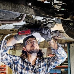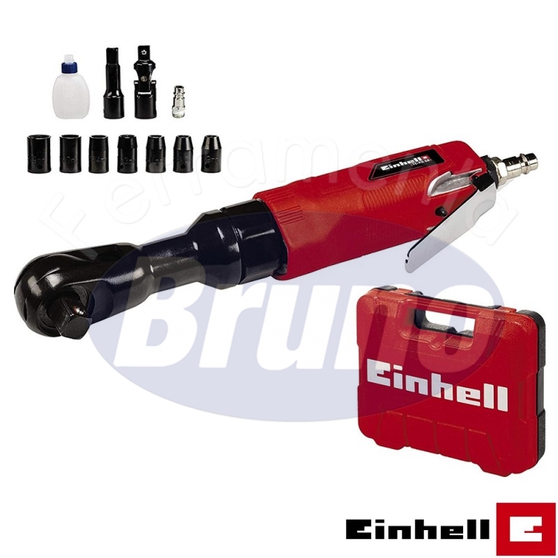 L'avvitatore pneumatico a cricchetto Einhell TC-PR 68 è un ausilio utile e potente per avvitare o allentare.Questo cacciavite a cricchetto dispone di una coppia massima di 68 Nm.L'impugnatura antiscivolo rende il lavoro piacevole e sicuro.L'avvitatore pneumatico a cricchetto raggiunge le migliori prestazioni a partire da un diametro interno del tubo flessibile di 9 millimetri.La rotazione a destra e a sinistra sono regolabili sulla testa del cricchetto.Oltre alle 7 chiavi a bussola da 9/10/11/13/14/17/19 mm, una prolunga e un giunto universale, l'avvitatore a cricchetto è dotata di un nipplo e un flacone di olio.Fornita con valigetta di custodia e trasporto.