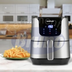 Cucinare sano, senza rinunciare al sapore e risparmiando energia? Assolutamente sì! Con la nostra friggitrice ad aria Friggisano è possibile preparare gustose e croccanti fritture con fino all’80% di grassi in meno! La tecnologia a circolazione d’aria rapida infatti, consente di cucinare con poco o niente olio, cibi sani e deliziosi in pochissimo tempo. Ma non solo... Le possibilità di cottura con Friggisano sono molteplici. Nella nostra friggitrice ad aria potrete anche cuocere una torta, cucinare al forno il pesce o le verdure e persino arrostire la carne! Grazie agli 8 programmi preimpostati potrete friggere in modo impeccabile patatine, anelli di cipolla, pollo, crostacei, carne, pesce senza sporcare in cucina. Equipaggiata con timer da 60 minuti, Friggisano è fornita inoltre di cestello removibile antiaderente da 3,5 litri di capacità, ideale per cucinare per tutta la famiglia e, per ottenere una cottura sempre perfetta, la temperatura può essere regolata anche manualmente tra 82 a 200°C. Per la massima praticità, Friggisano è dotata di ampio display digitale che permette di controllare in ogni momento le impostazioni selezionate, ed anche la pulizia è un gioco da ragazzi! È sufficiente utilizzare una spugna non abrasiva e acqua calda per pulire dopo la cottura.