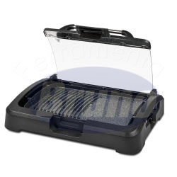 Con Gratella XL potrete soddisfare la vostra voglia di grigliare tutto l’anno: che sia carne, pesce o verdure, con questo barbecue elettrico otterrete sempre ottimi risultati. L’ampia superficie di cottura da 39 x 29 cm è abbastanza grande da cuocere un pasto per tutta la famiglia; la piastra in materiale antiaderente vi permetterà un doppio utilizzo: liscia per grigliare e rigata per funzione barbecue. La resistenza annegata nella piastra garantisce una cottura senza cattivi odori ed una perfetta distribuzione del calore, e con l’aiuto del termostato regolabile, potrete adattare la temperatura ad ogni alimento. Il coperchio in vetro temperato permette una cottura protetta: sarete al sicuro da schizzi di olio e grasso e potrete cuocere anche al freddo, poiché il calore verrà mantenuto all’interno. Infine, questa unità è completamente smontabile per permettervi una pulizia facile e veloce.
