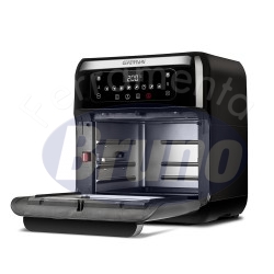 Friggisano 2.0 è un elettrodomestico multifunzione che ti permetterà di cucinare sano, senza rinunciare al sapore e risparmiando energia. E’ l’evoluzione della friggitrice ad aria e potrai preparare gustose e croccanti fritture con l’80% di grassi in meno: la tecnologia a circolazione d’aria rapida, unita all’alta temperatura (fino a 200°C) ti consentiranno di cucinare anche senza olio cibi sani e deliziosi, senza rinunciare alla croccantezza del fritto tradizionale. Il cestello rotante in acciaio inox è perfetto per preparare delle magnifiche patatine e tanto altro. Ma non solo... Friggisano 2.0 è anche un forno elettrico con molteplici funzioni. Potrai tostare, gratinare, cuocere al forno, arrostire, scongelare e riscaldare qualsiasi alimento. Avrai a disposizione un ampio display digitale con comandi soft-touch e 9 programmi preimpostati, la luce interna per controllare lo stato dei cibi ed un’ampia dotazione di accessori: 2 teglie forate antiaderenti per cuocere contemporaneamente su più livelli, l’accessorio per spiedini ed il girarrosto, entrambi rotanti ed in acciaio inox, per cuocere carne, arrosti, spiedini, arrosticini e pollo allo spiedo. Friggisano 2.0 è dotata di pareti interne facili da pulire e vassoio raccogli grassi estraibile: anche la pulizia è un gioco da ragazzi!