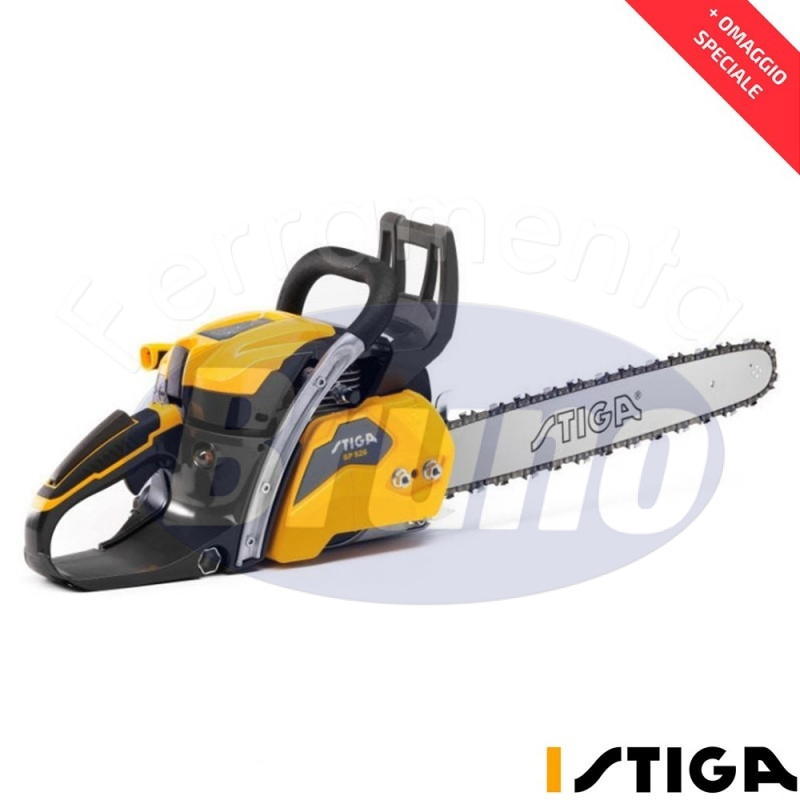STIGA SP 526 è una motosega a scoppio affidabile e con un buon rapporto peso-potenza, adatta sia a lavori di tipo domestico che forestali grazie alla barra da 45 cm (18”). Il motore a scoppio da 52 cc (2,5 kW) è unito ad un carter motore in magnesio che assicura solidità, affidabilità ed un raffreddamento più rapido. La valvola di decompressione permette un avviamento facilitato mentre la pompa dell’olio è automatica e regolabile. Tutte le operazioni di manutenzione sono comode e rapide grazie ad alcune caratteristiche come il pomello per aprire la cover del filtro aria senza l’ausilio di attrezzi, la chiave di tensionamento riposta sotto la maniglia posteriore e la finestrella trasparente del serbatoio per controllare il livello di carburante. L'impugnatura ergonomica soft-touch e il complesso sistema di molle assicurano vibrazioni ridotte ed un maggiore comfort.Il freno catena manuale e inerziale consente di interrompere la corsa della catena in 0,089 secondi usandolo con una sola mano, offrendo massima sicurezza in caso di kickback.