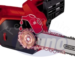 L'elettrosega GH-EC 2040 è un pratico strumento, efficace ed affidabile, un valido aiuto per tagliare legna da ardere, per diradamento rami e per abbattere piccoli alberi. Una barra e catena di qualità OREGON garantiscono prestazioni ottimali di taglio. La catena può essere tesa e sostituita senza attrezzi. Per una buona trasmissione di potenza e una lunga durata, è fornita di robusti ingranaggi di metallo. La struttura è dotata di protezione anti-ritorno e di freno meccanico della catena, che garantisce un arresto immediato in caso di necessità. Una grande finestra trasparente rende facile controllare quanto olio è nel serbatoio per il sistema di lubrificazione automatica della catena. Un perno robusto in metallo garantisce un impiego sicuro, e serve anche come un punto di rotazione durante il taglio orizzontale dei tronchi. clip portacavo.