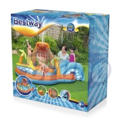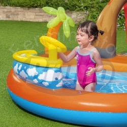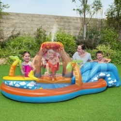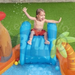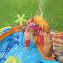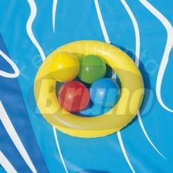 o Include 4 palline da lanciare su e giù dalla rampa gonfiabile e 1 anello gonfiabile per il gioco di lancio degli anelli!