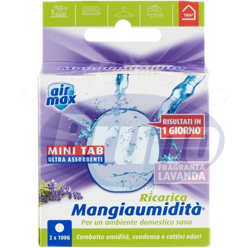 La Ricarica Mini Tab è la tecnologia più avanzata nell’ambito dei cristalli assorbiumidità. E’ composta da cristalli compressi che si attivano più rapidamente rispetto alle altre ricariche: le prime gocce sono visibili già dopo 24 ore. Garantisce un utilizzo pulito e sicuro. Utilizzabile nei Mini Kit mangiaumidità Ambiance Air Max. In ogni confezione sono presenti due Ricariche Mini Tab. Disponibile nelle fragranze neutra, lavanda, fiori di primavera e incanto d'oriente.
