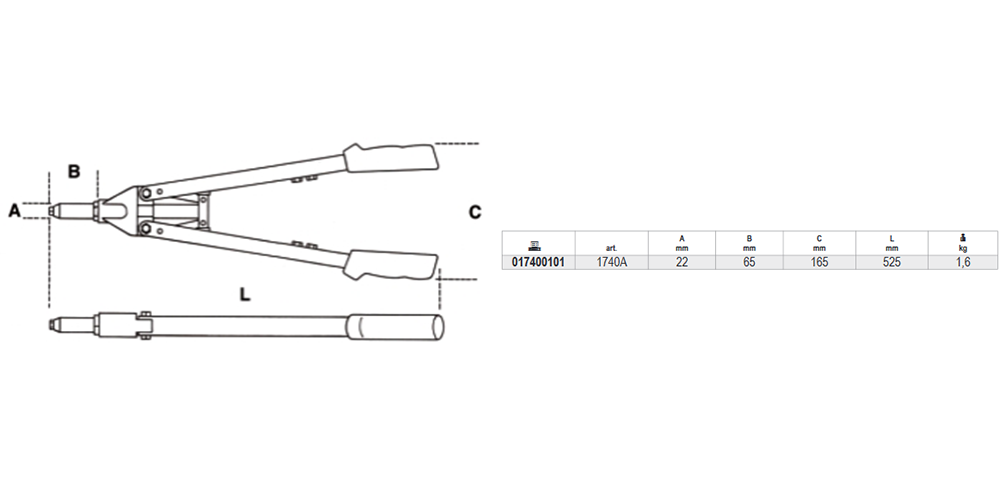 Rivettatrice di potenza con 5 testine intercambiabili art. 1740A