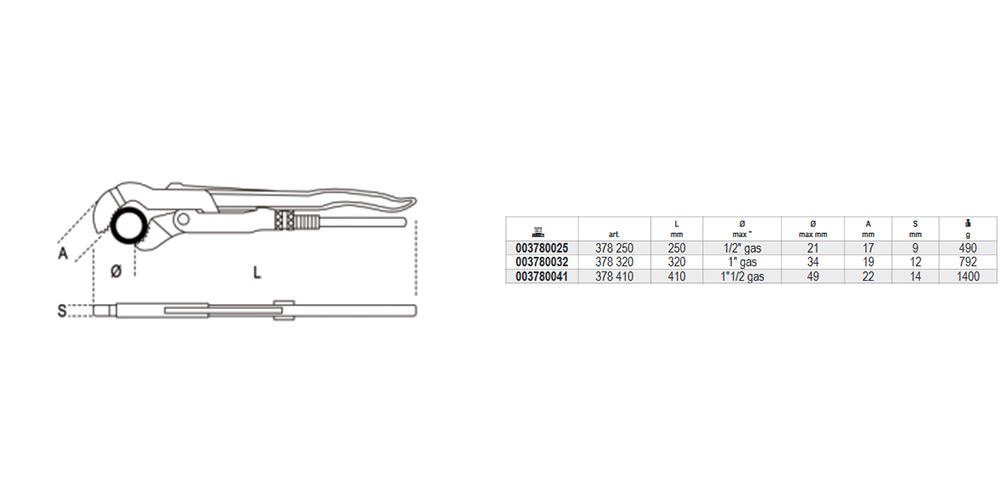 Giratubi modello svedese con ganasce sottili a 45° in acciaio forgiato art. 378