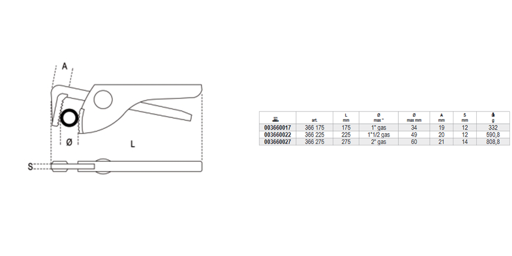 Giratubi modello americano con corpo in lega leggera e ganasce in acciaio forgiato art. 366